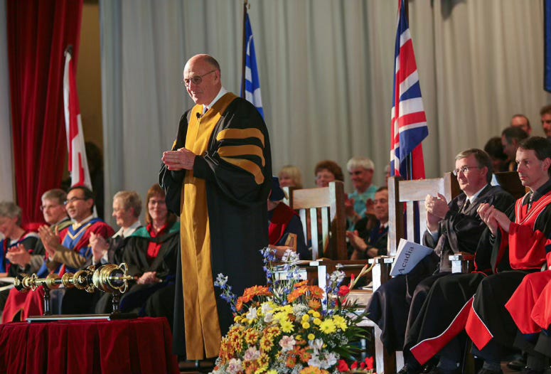 A few years later I was heavy into student politics at Acadia University, and the search for a new Chancellor was underway.